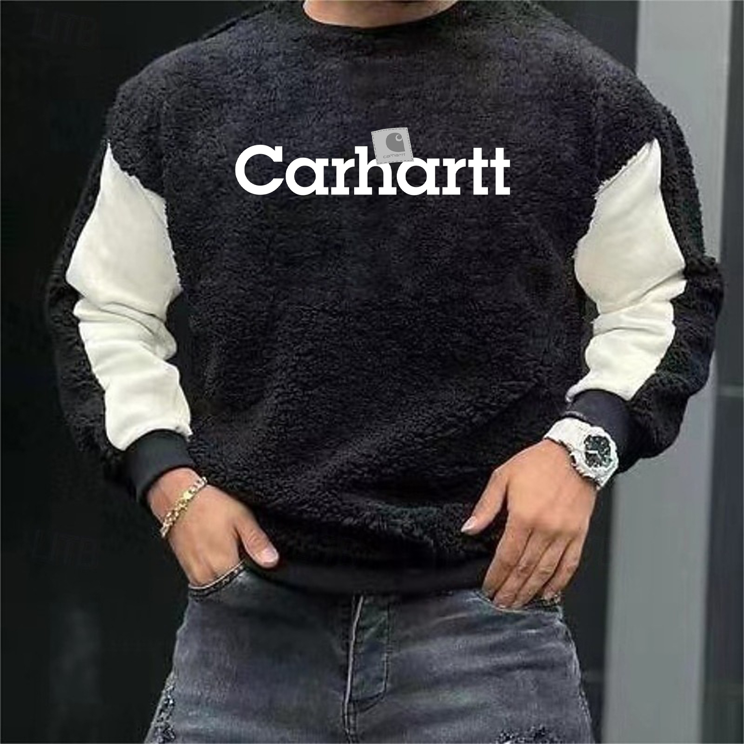 • Unique contrast sleeves add a stylish twist to your outfit