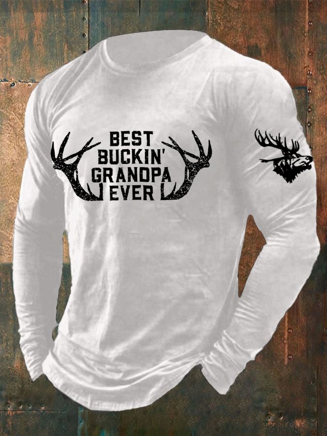Men's Best Buckin Grandpa Ever Printed Long Sleeve T-Shirt