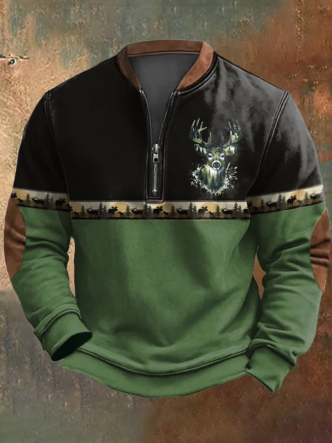 Men's Camouflage Elk Print Zip-Up Sweatshirt