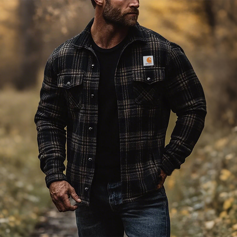 • Design Elements: Classic plaid pattern. button-down closure. chest pocket with logo patch
