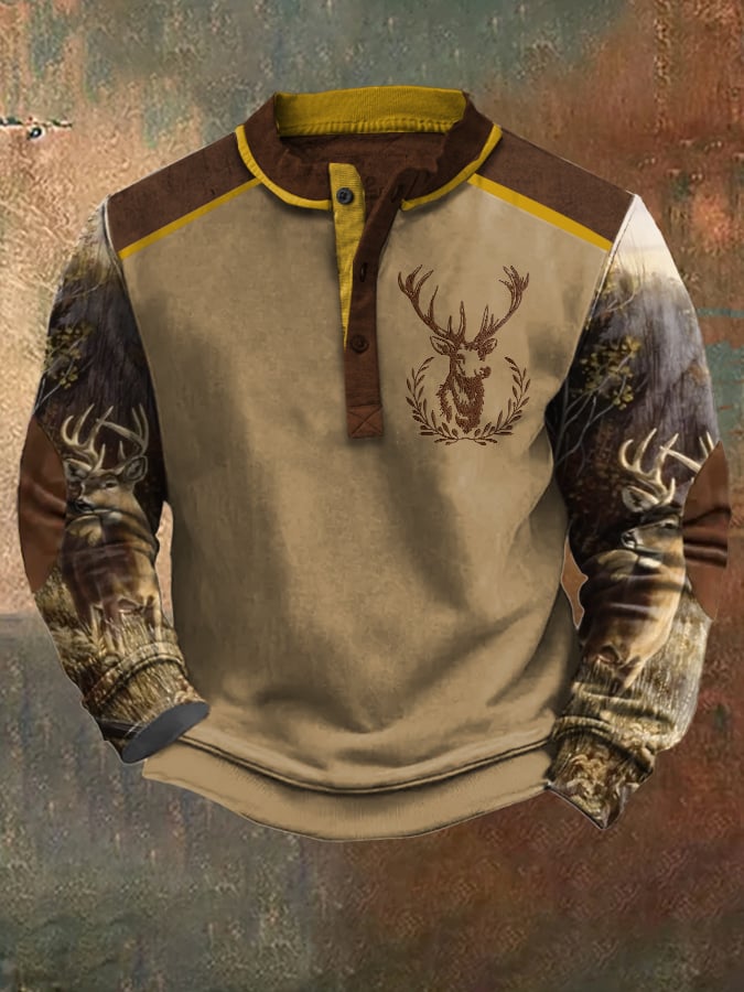 Men's Casual Vintage Contrast Elk Western Sweatshirt