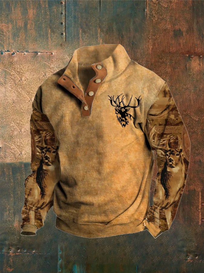 Men'S Deer Print Button Casual Sweatshirt
