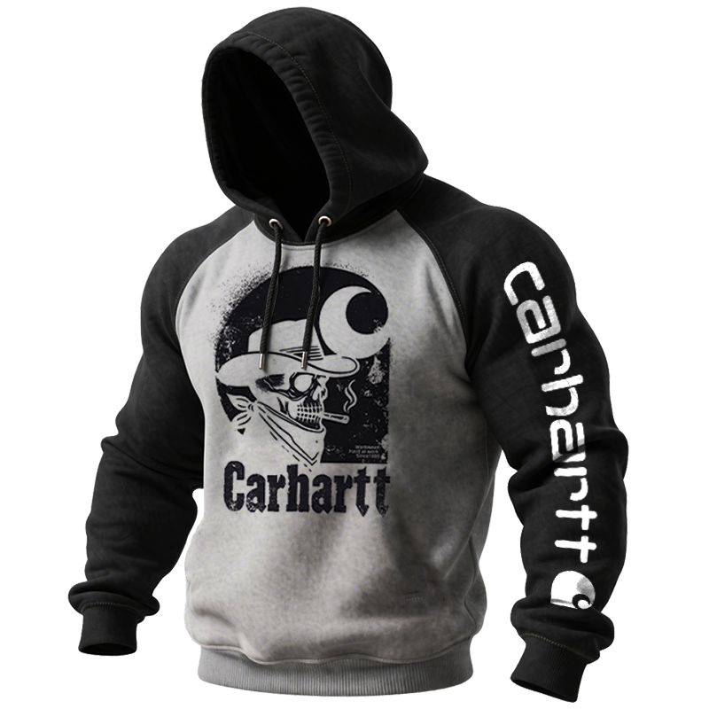 Men's Graphic Print Skull Cowboys Gaglan Sleeves Hoodie