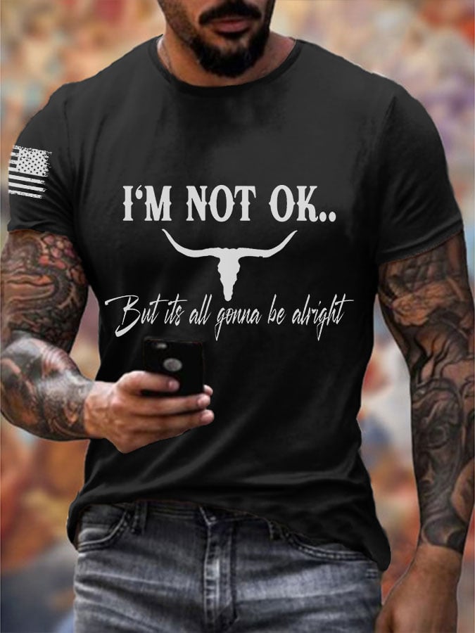 Men's I'm Not Ok But Its All Gonna Be Alright Printed Casual T-Shirt