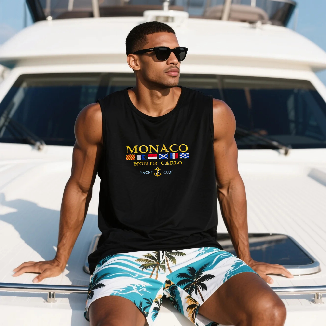 Men's Loose Comfortable Cotton Yacht Club Sleeveless T-Shirt Monaco Print Vest