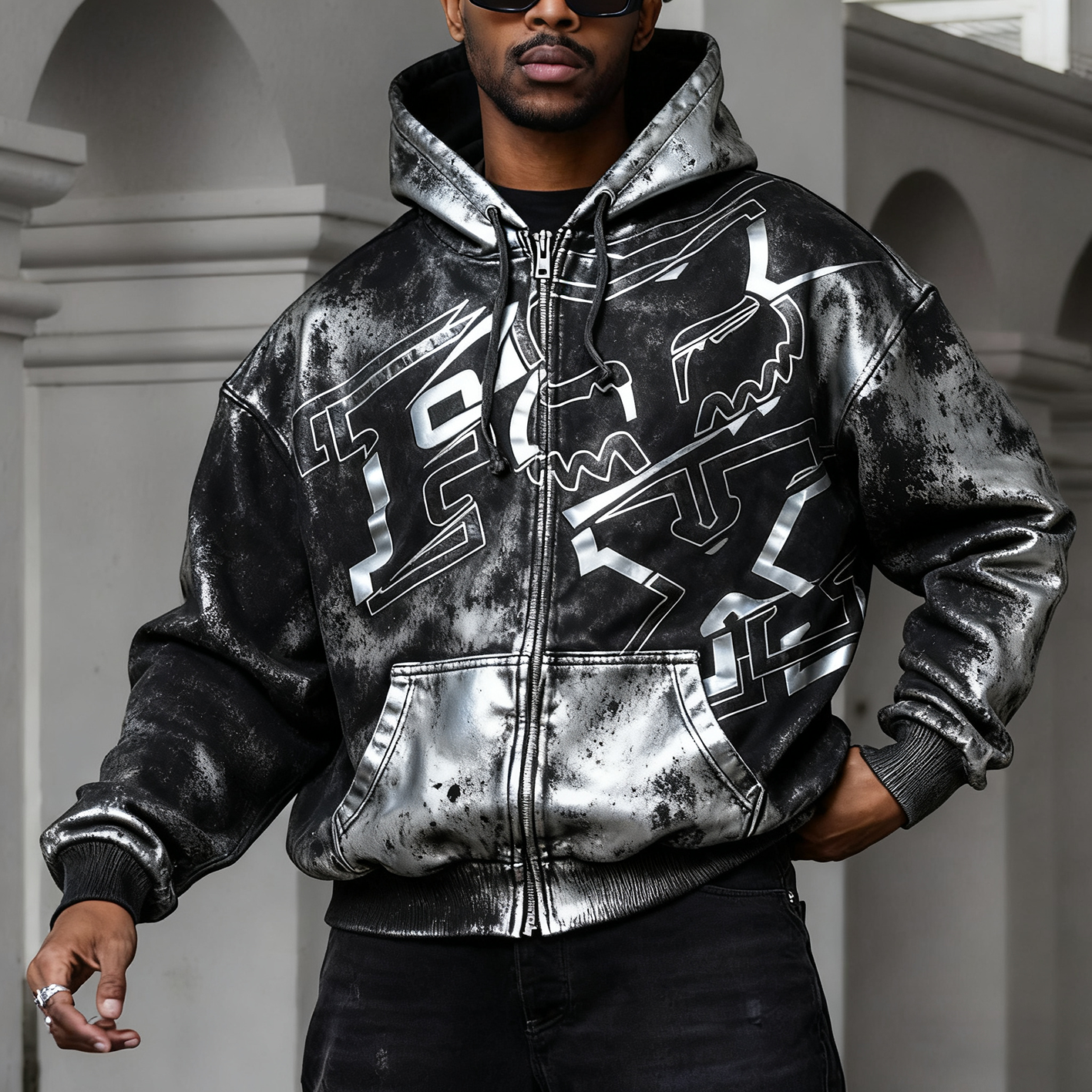 Men's Racing Print Oversized Zip Hooded Jacket