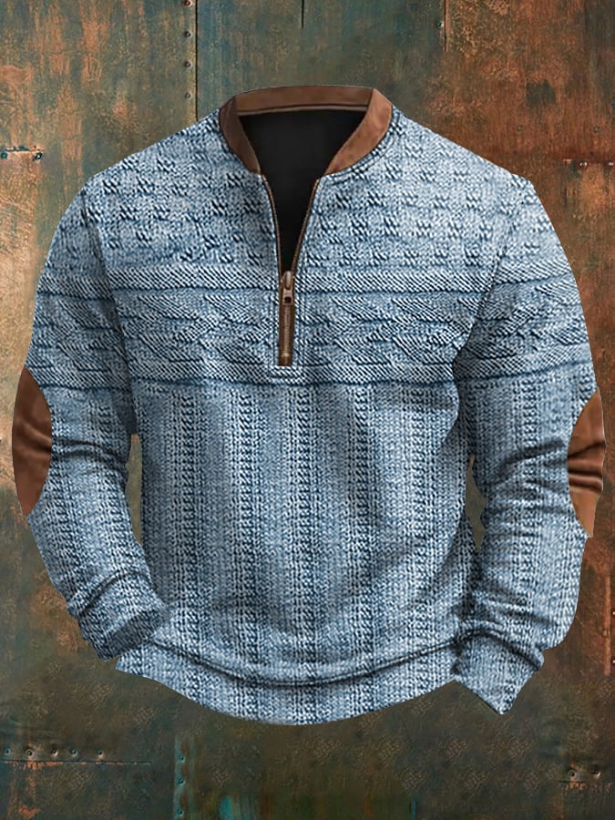 Men's Retro Braid Pattern Print Casual Pullover