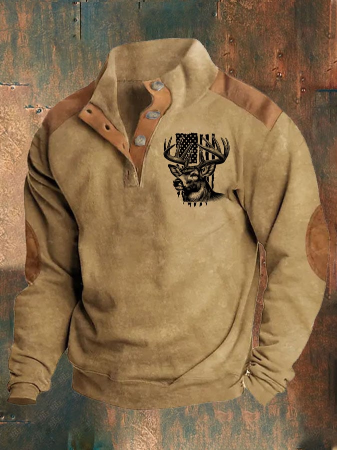 Men's Retro Western Button Print Sweatshirt
