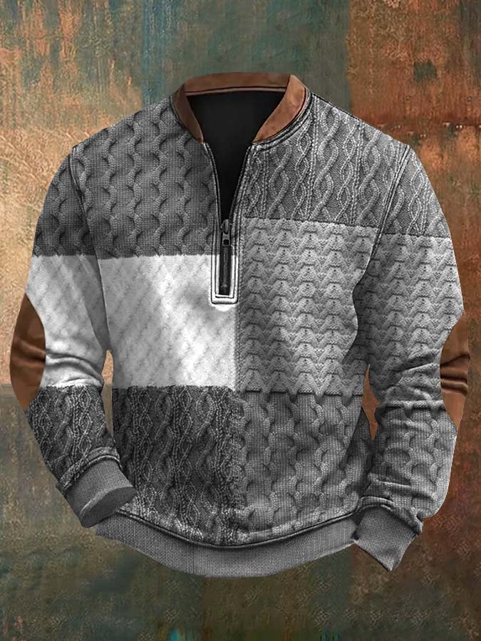 Men's Retro Western Print Zip-Up Sweatshirt