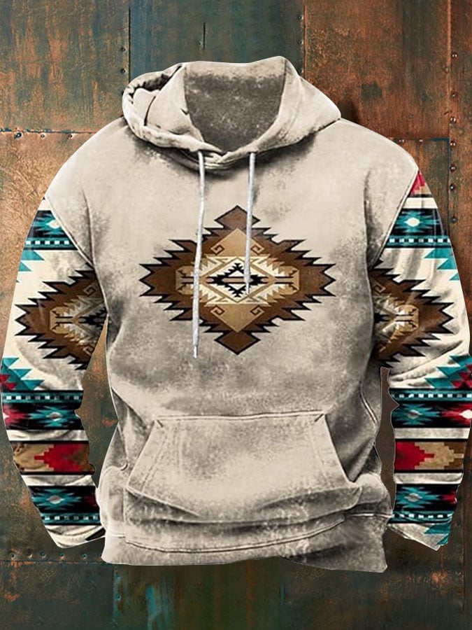 Men's Retro Western Style Printed Hooded Sweatshirt