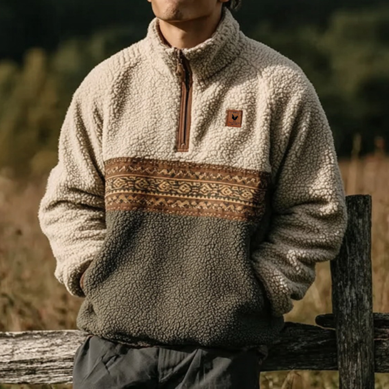 Men's Surfing Light Khaki Loose Casual Autumn And Winter New Lambskin Splicing Sweatshirt