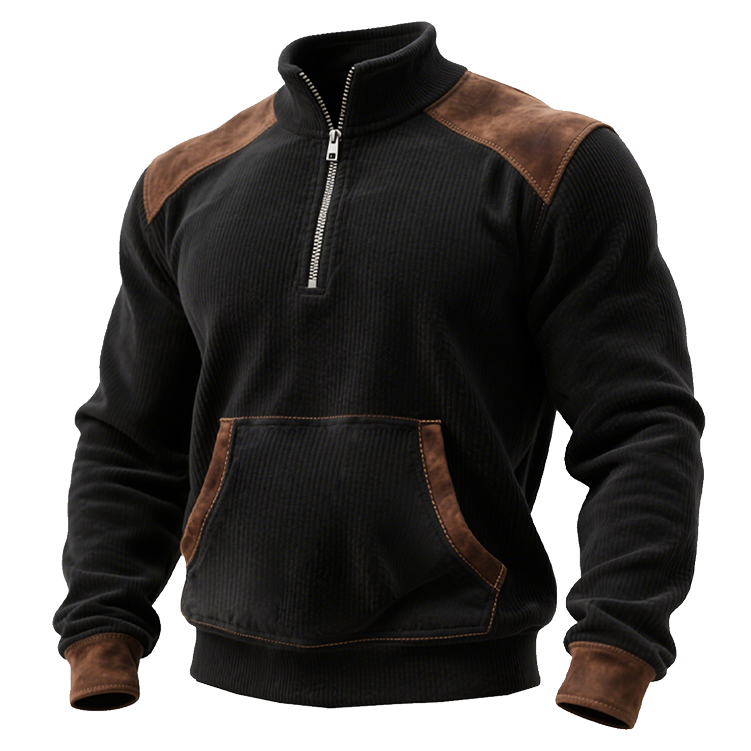 • Design Elements: Half-zip closure. contrast shoulder panels. ribbed cuffs and hem