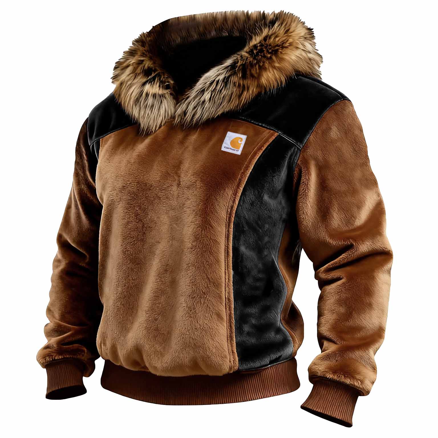 • Design Elements: Faux Fur Collar for Added Warmth. Contrasting Panel Details. Ribbed Cuffs and Hem for a Secure Fit
