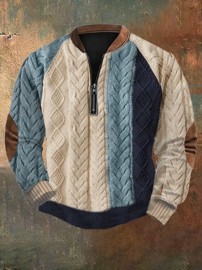 Men's Vintage Knit Print Zip-Up Sweatshirt