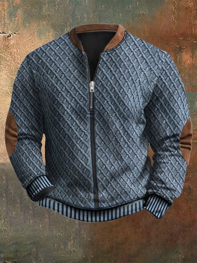 Men's Vintage Knit Print Zip-Up Sweatshirt