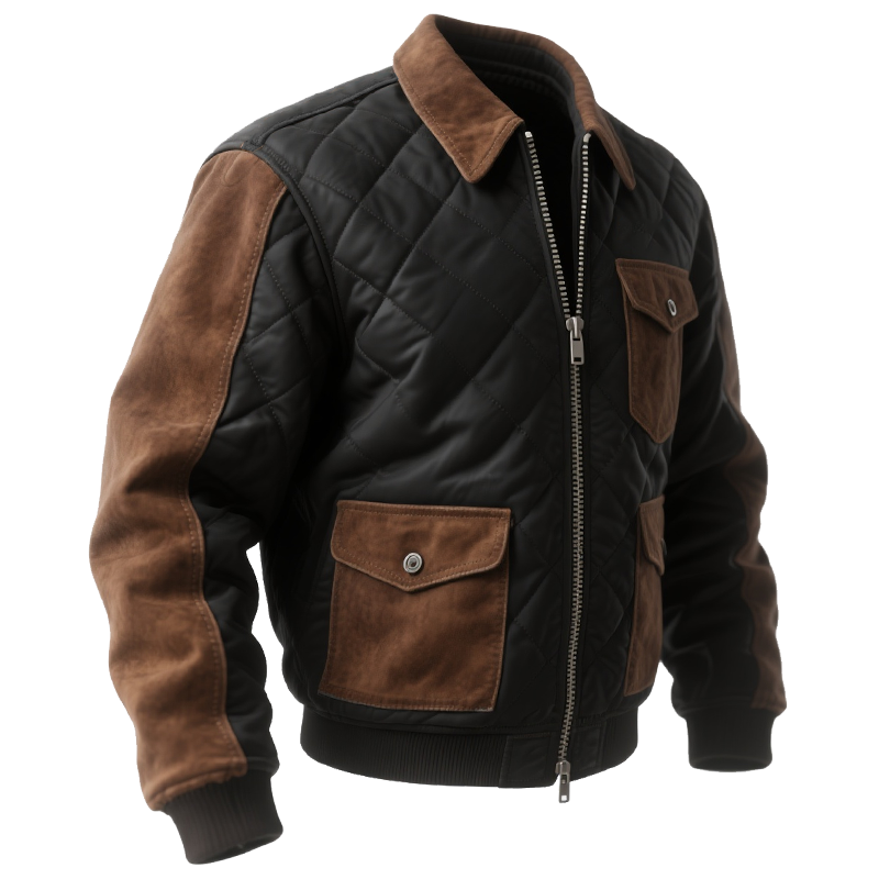 • Design Elements: Quilted pattern on the front. contrast sleeves and collar. functional pockets