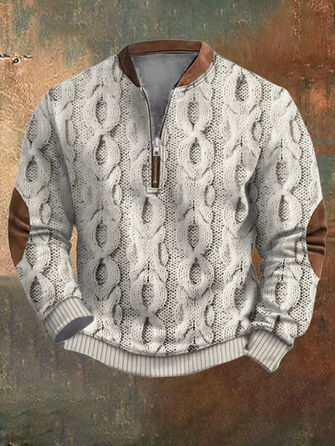 Men's Vintage Printed Casual Zipper Sweatshirt