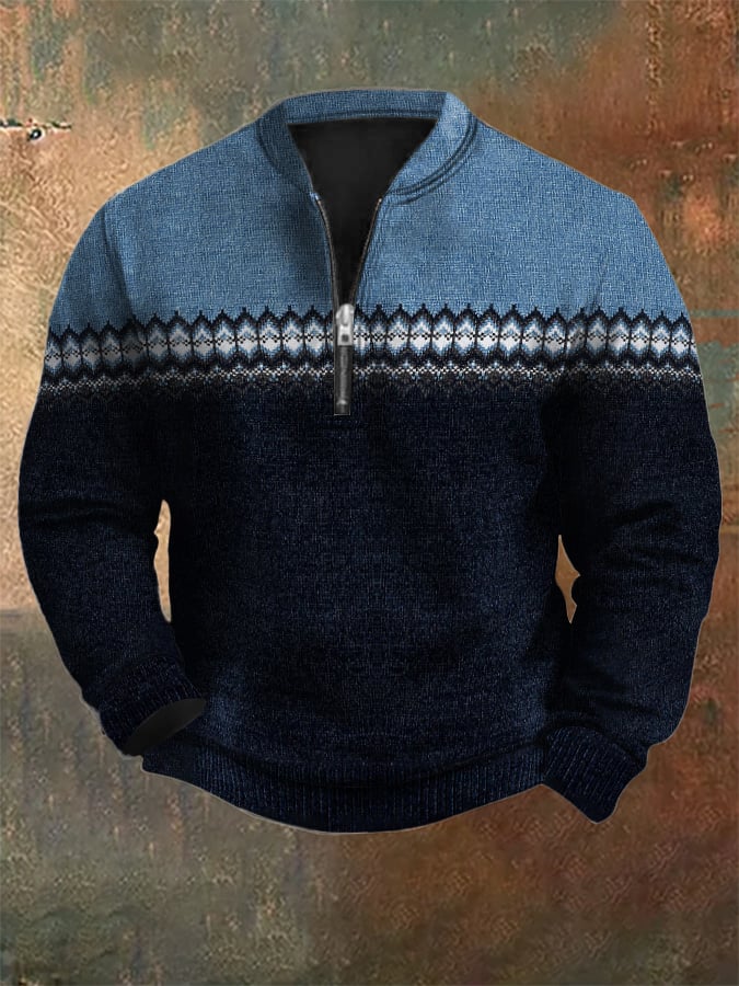 Men's Vintage Printed Casual Zipper Sweatshirt