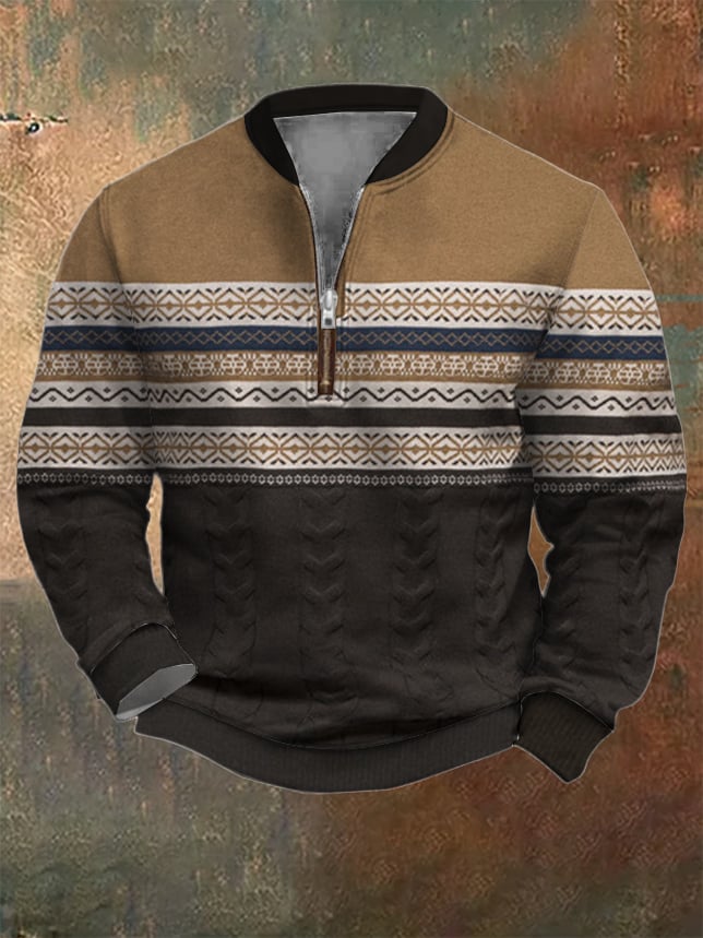 Men's Vintage Printed Casual Zipper Sweatshirt