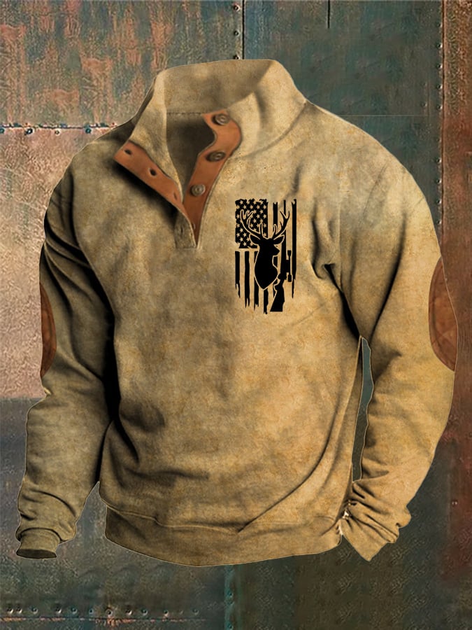 Men's Vintage Western Elk Stand Collar Sweatshirt