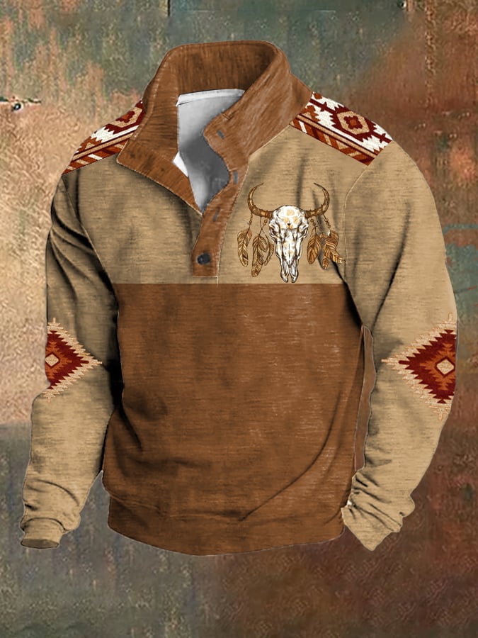 Men's Vintage Western Print Buttons Casual Sweatshirt