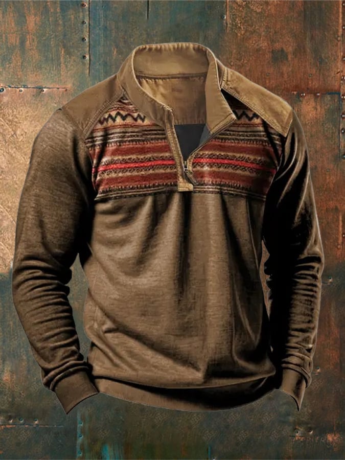Men's Vintage Western Print Long Sleeve Sweatshirt