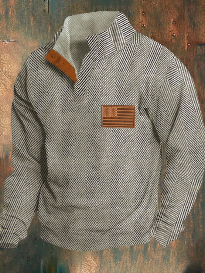 Men's Western Hunting Wear Jacquard Herringbone Design Stand Collar Button Sweatshirt (Non-Print)