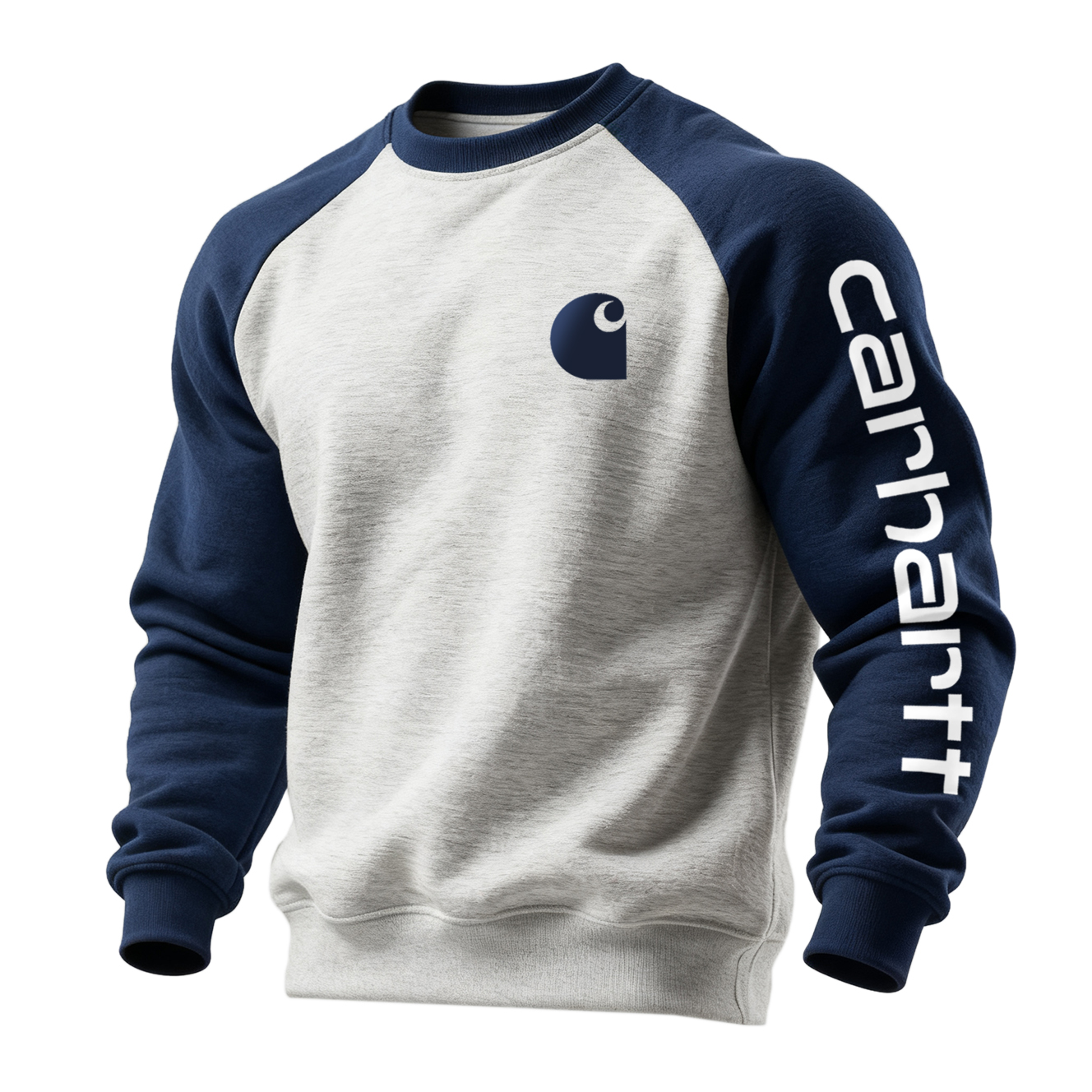 • Design Elements: Chest logo patch. vertical sleeve lettering. contrast raglan sleeves